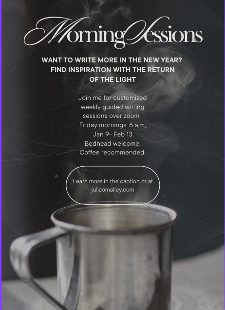 Do you want to write more in the new year? Join me for guided early-morning writing sessions meant to bring inspiration in the darkest part of the year while you build habits to support a regular writing practice.