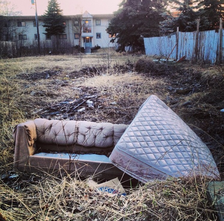 One of my favorite posters on my Instagram feed goes by @ataritacos. He’s got a great eye for grittiness and a special affection for Fairview, or as he hashtags it, #thepeoplesrepublikoffairview. He has a way with making decay look beautiful, and an artist’s obsession with abandoned couches (#couchblog). I wrote him recently. His real name is Adan Hernandez. He’s 36 years old. When not cruising his neighborhood by bike, looking for things to photograph, he helps out at his family’s taco shack, Oscar’s Taco Grande down by Anchorage jail. (It is delicious, btw, go there for lunch.) Here are some of his favorite snaps: