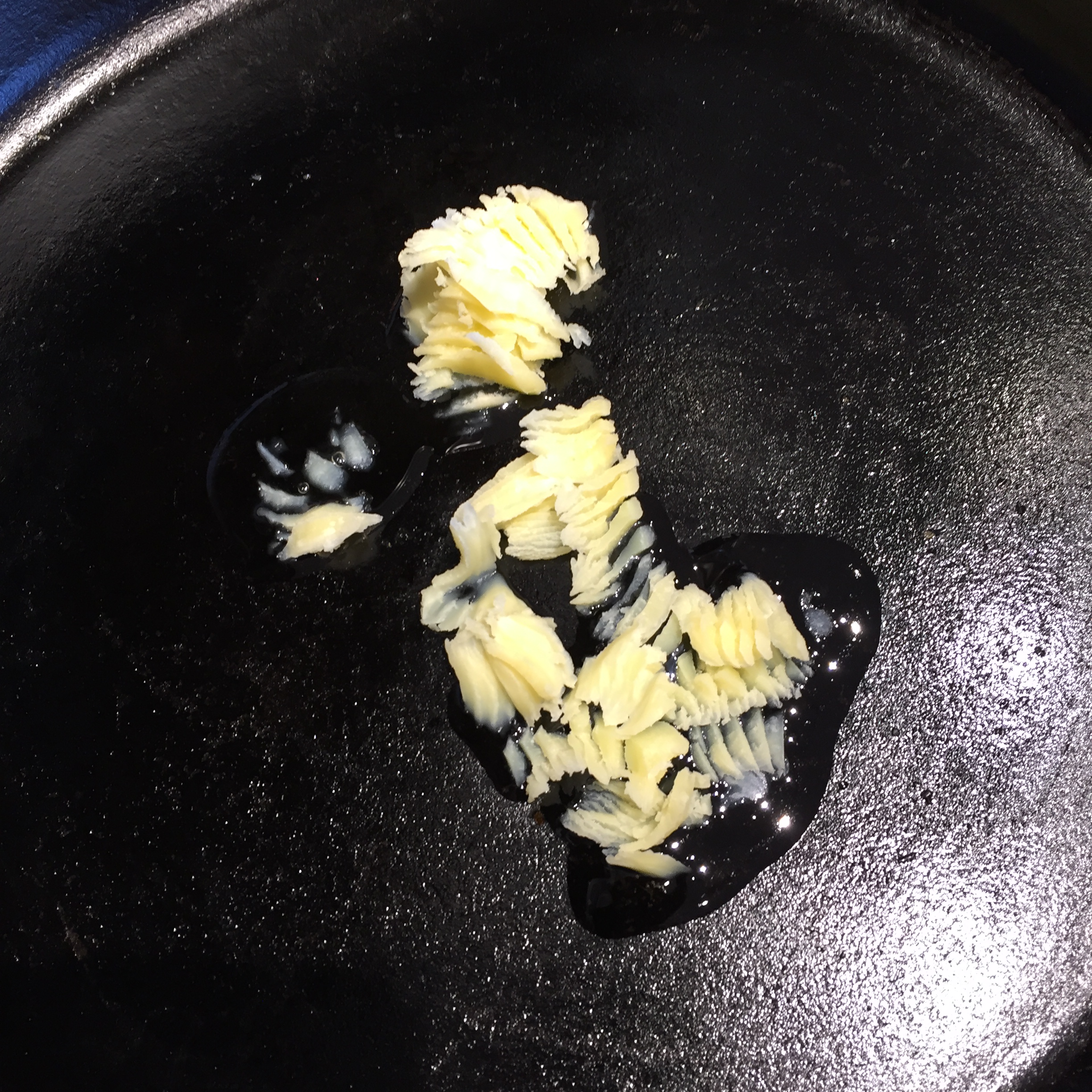 Ghee is great. It’s an essential in Indian cooking and often also used by people who are lactose intolerant or on other special diets. (In Anchorage, you can find it at Natural Pantry, Sagaya and sometimes Fred’s). It cooks at a higher temperature than butter, and that’s what makes the magic happen. Here’s what it looks like: